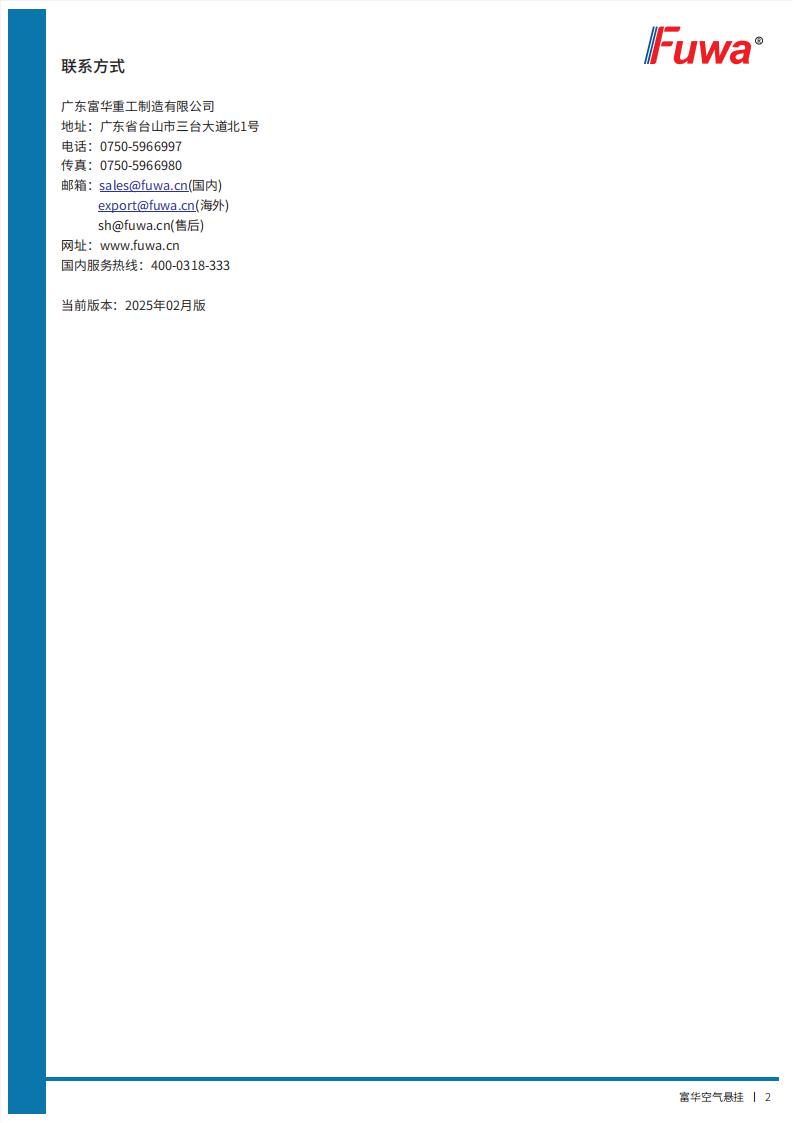 富華空氣懸掛【產(chǎn)品使用說(shuō)明書(shū)】